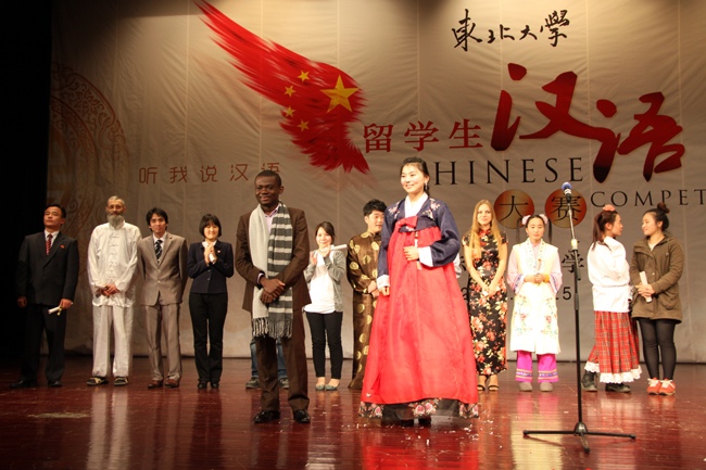 On November 25, the final of Third Northeastern University Foreign Student Chinese Competition was held. This competition, themed as “Listen to my Chinese, Show my Talents” was a visual and audio banquet for the audience. 14 contestants from 8 countries attracted the judges and audience by combining special charm of Chinese and their performing talents.