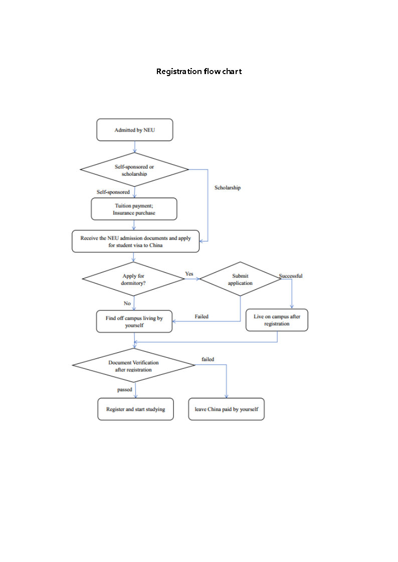 1. Apply on NEU website. The NEU online application portal: http://studyinneu.neu.edu.cn or http://neu.17gz.org. Please register with your email address and complete the application by following instructions on the website. One email address can be used to create one account.